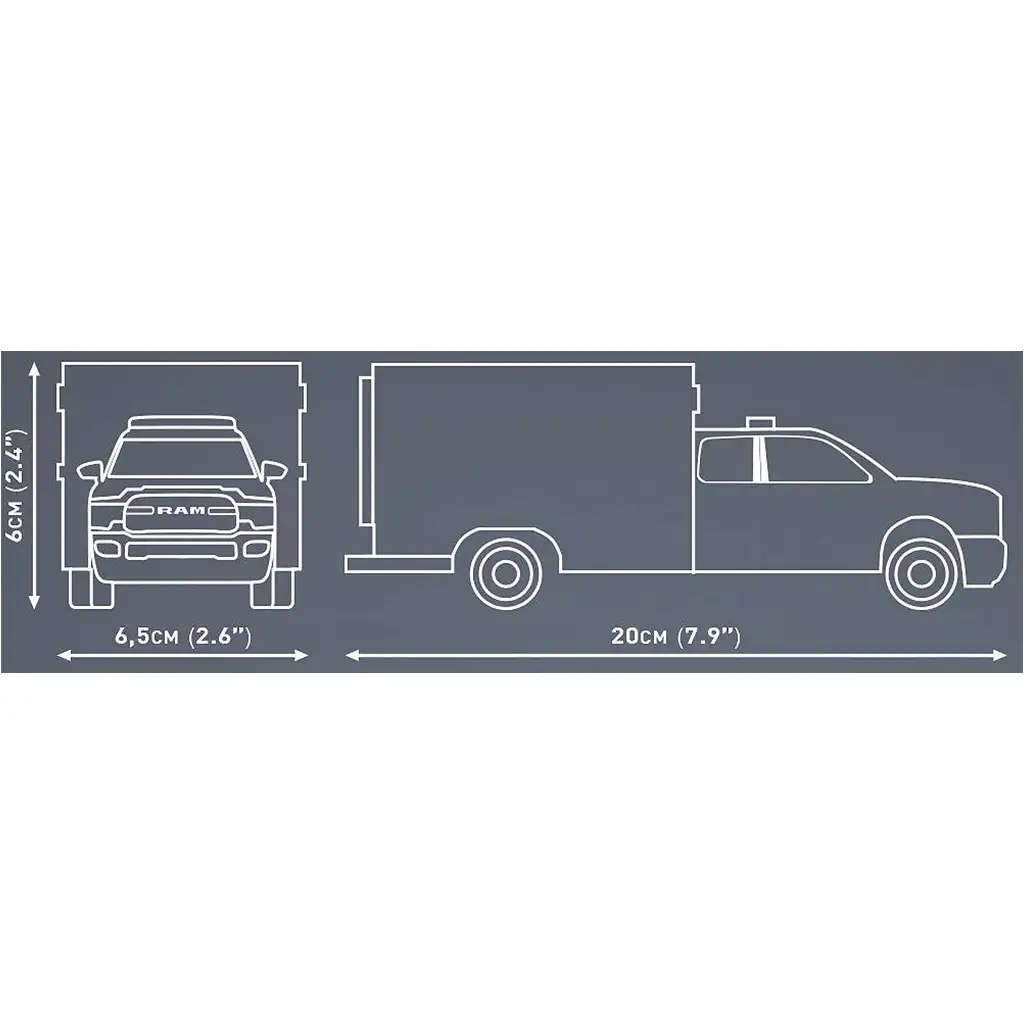 COBI Dodge RAM 3500 reševalno vozilo – komplet za sestavljanje je resnično poseben model reševalnega vozila v ameriškem slogu, ki spominja na medicinsko različico RAM 3500 pickupa. Podroben komplet v merilu 1:35 vsebuje 295 natančnih gradbenih elementov, ki odlično posnemajo robustno zgradbo in funkcionalno zasnovo izvirnega vozila. Tiskane dekoracije so izdelane z resnično natančnostjo – ne potrebujejo nalepk, zato ostanejo trajne tudi po dolgotrajni uporabi. Kolesa s gumijasto prevleko, ki jih je mogoče zavrteti, zagotavljajo realističen občutek igre, medtem ko njegova stabilna konstrukcija omogoča, da je kos primeren tudi za razstavno zbirko.