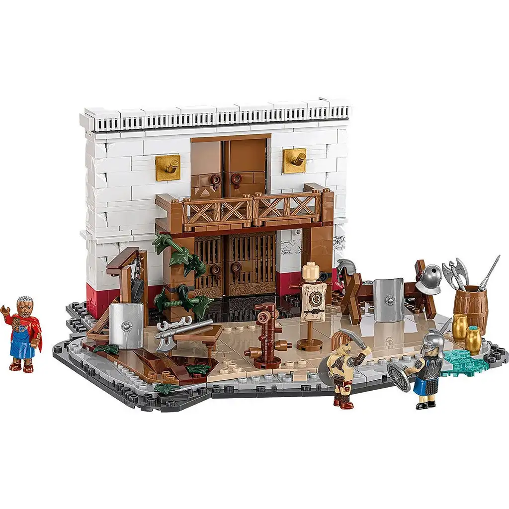 Doživi najbolj razburljive trenutke starega Rima s tem izjemno podrobnim kompletom za sestavljanje Gladiatorska šola, ki vsebuje 583 elementov! Lanista, torej vodja šole za gladiatorje, je že pripravljen, da iz sužnjev izuri borce za krvave boje v zabavo ljudstva. V kompletu lahko zgradiš ne le stavbo šole in dioramo vadbenega prostora, ampak najdeš tudi tri figure – med njimi dva gladiatorja in enega lanista.