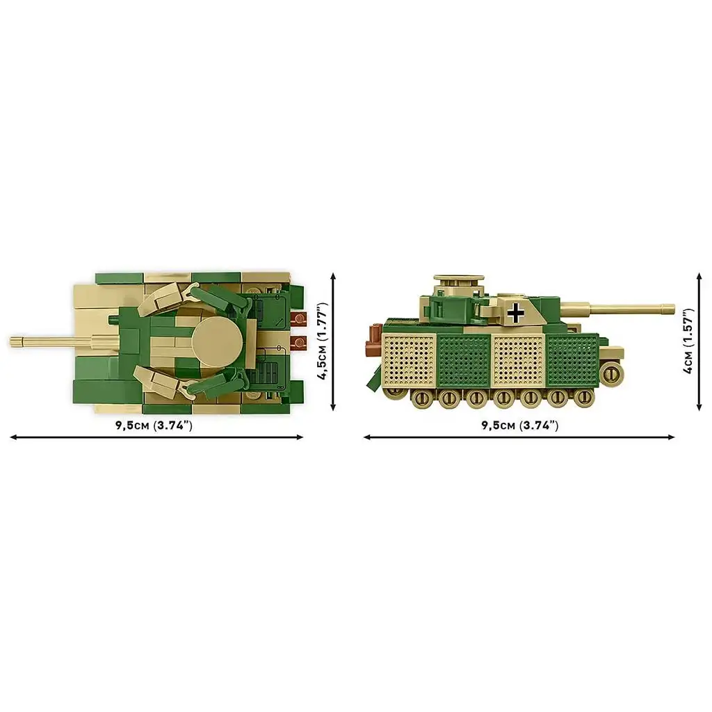 Konstrukcijska igrača Panzer IV Ausf. J COBI-3097 ponuja podroben mikro model nemškega srednjega tanka iz druge svetovne vojne, Panzerkampfwagen IV Ausführung J. Komplet vsebuje 128 kakovostnih gradnikov v merilu 1:72, iz katerih sestavite tank z vrtljivim stolpom in pogonskimi kolesi, dolžine približno 9,5 cm, širine 4,5 cm in višine 4 cm.