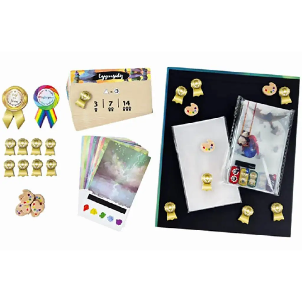 Slikanje iz nove perspektive! Canvas: Odsevi, umetniška sestavljanka z novo plastjo - zrcalnimi kartami! Te obojestranske karte ponujajo globljo strategijo in večjo prilagodljivost pri oblikovanju kombinacij elementov. Poleg tega nova plošča ponuja širši izbor umetniških kart, kar omogoča boljše načrtovanje vnaprej in več možnosti izbire, tudi če vam zmanjka Inspiracijskih kart. Poleg tega razširitev prinaša Zlate bonus trakove, ki jih lahko pridobite, če določen element postavite poleg zlatega bonus ikona. Nove točkovne karte pa so odgovorne za skrivnostne nove izzive in dodano ponovljivost.