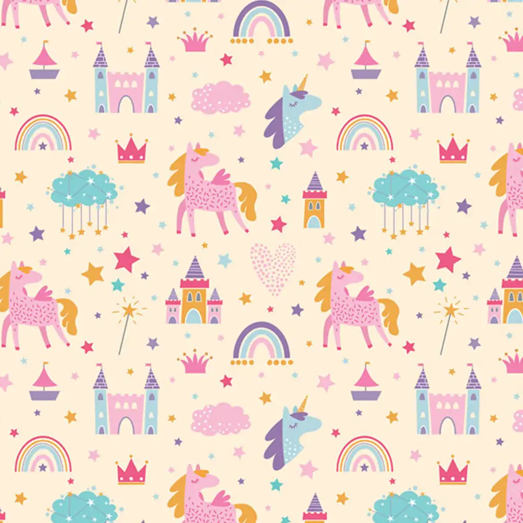 Motivi pravljičnega sveta: samorogi, gradovi, mavrice in zvezde