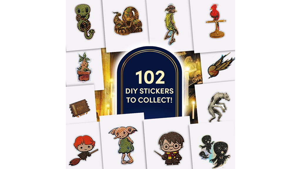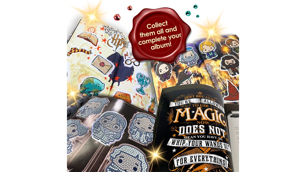 Družine lahko pridobijo dodatne paketke presenečenja, da razširijo svojo zbirko nalepk. Ti paketki vsebujejo vznemirljive, nove nalepke, s katerimi lahko zbirko še bolj popestrijo in raznolikost ji dodajo. Paketki presenečenja omogočajo, da otroci in starši skupaj odkrivajo nove vzorce ter skupaj uživajo v veselju lepljenja nalepk. Ez ne le spodbuja ustvarjalnost, ampak skupno preživljanje časa naredi še zabavnejšim.S tem albumom, ki ga je navdihnil Harry Potter, postane izdelava nalepk resnično čarobna izkušnja za vso družino. Začetni paket vsebuje album s 102 nalepkami ter dva paketka presenečenja, v katerih so po tri nalepke. Te nalepke so pripravljene, da jih okrasite s sijočimi kristalnimi kamenčki. Ta ustvarjalna dejavnost ni le zabavna, ampak razvija tudi ročne spretnosti in ustvarjalnost, medtem ko lahko družina skupaj preživi kakovosten čas v svetu čarovnije.