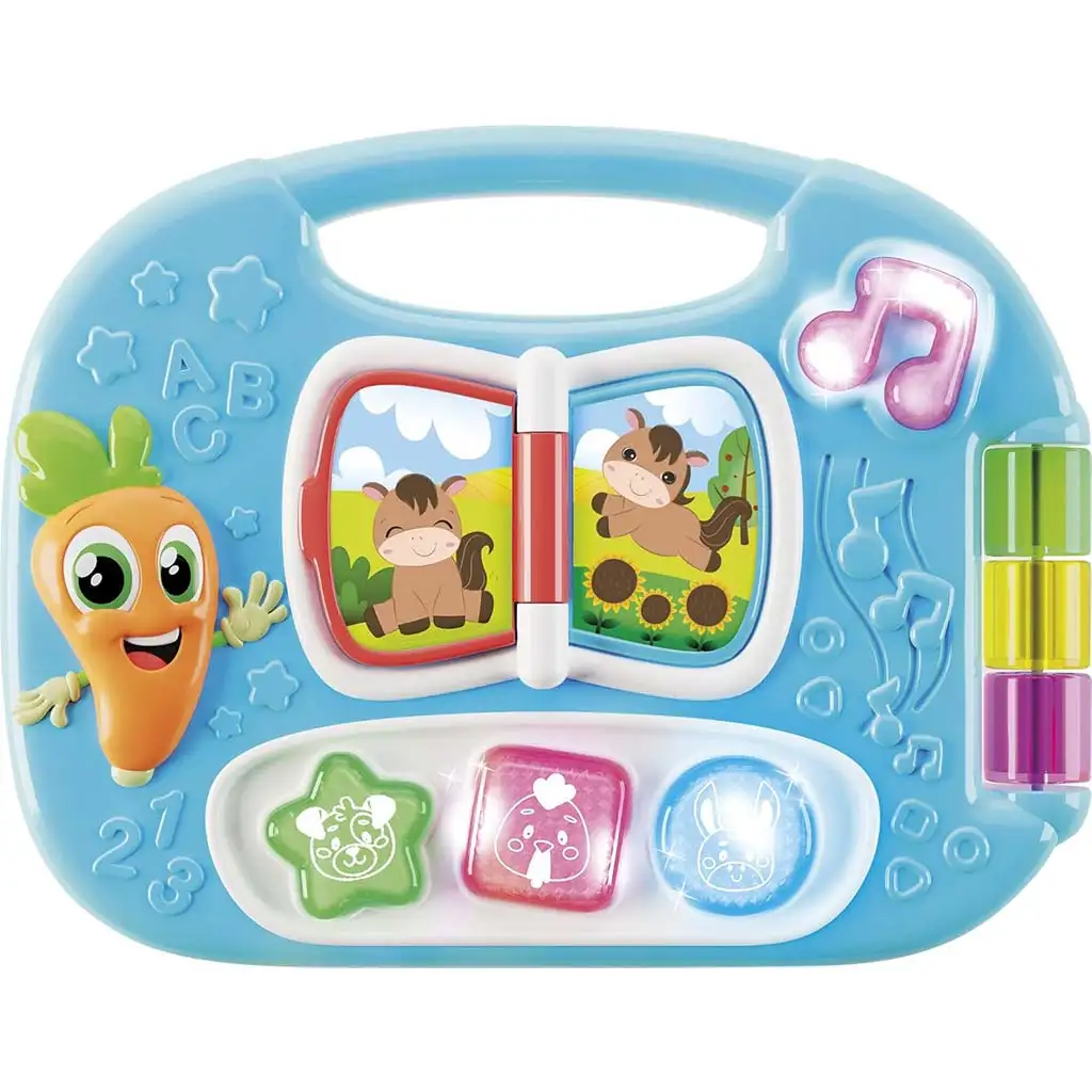 Gumbi na mizi predvajajo različne zvoke s kmetije, kratke pesmice in izštevanke, medtem ko se na straneh vrtljive knjižice pojavljajo simpatične živalske figure. Namen seta je spodbuditi malčke k odkrivanju, pritiskanju gumbov, prepoznavanju zvokov in posnemanju, s čimer jih pripravlja na zgodnje faze učenja govora in kognitivnega razvoja. Kompaktna velikost in robustna, stabilna zasnova zagotavljata varno uporabo za malčke, ne glede na to, ali se igrajo sede ali stoje.