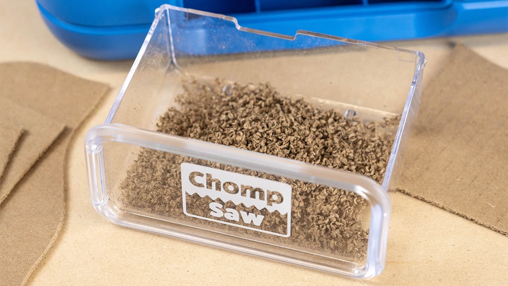 ChompSaw je bil zasnovan predvsem za rezanje kartona, vendar je odličen tudi za materiale, kot so tkanina, papir ali hobi pena. Pri oblikovanju ChompSaw-a so posebno pozornost namenili varnosti — ne reže las, prstov ali oblačil. Kljub temu je za še varnejše in udobnejše ustvarjanje priporočljivo, da si otroci spnejo dolge lase in se izogibajo ohlapnim oblačilom. Za najboljšo učinkovitost je priporočljivo, da skrbniki vsakih 30 minut izpraznijo predal za odpadni karton, da preprečijo zamašitve. ChompSaw je tako ne le varen, ampak tudi praktičen in enostaven za uporabo pri vseh ustvarjalnih dejavnostih, naj gre za domače ustvarjanje ali šolske projekte.Mali graditelji; razvoj finomotoričnih spretnosti; ustvarjalni otroci; ljubitelji ročnih del; igraj se in pokaži svoja ustvarjanja