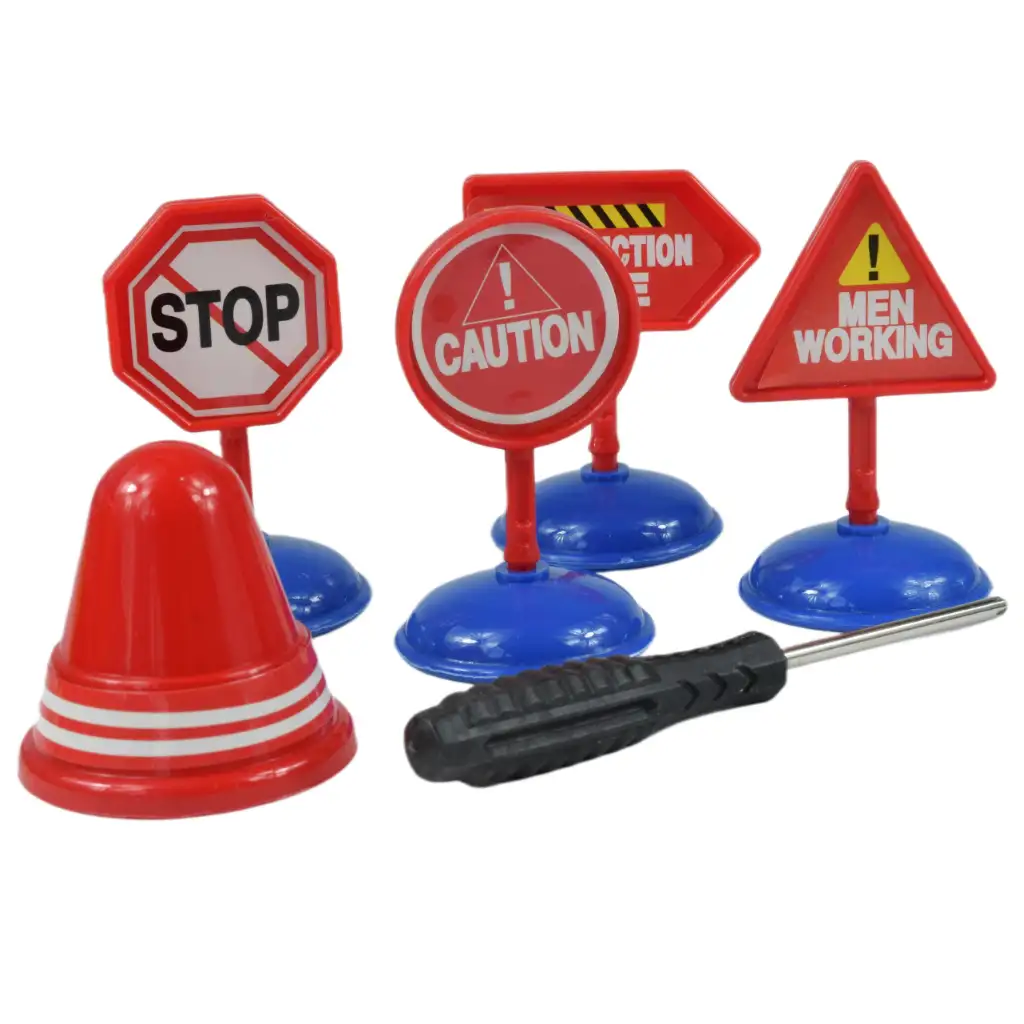 Igralno polje dodatno popestrijo priložene prometne table in stožci, s katerimi lahko igro naredite bolj realistično. Te lahko prosto postavite na igralno polje, tako da lahko med prevozom in razkladanjem tovornjaka ustvarite realistične situacije.