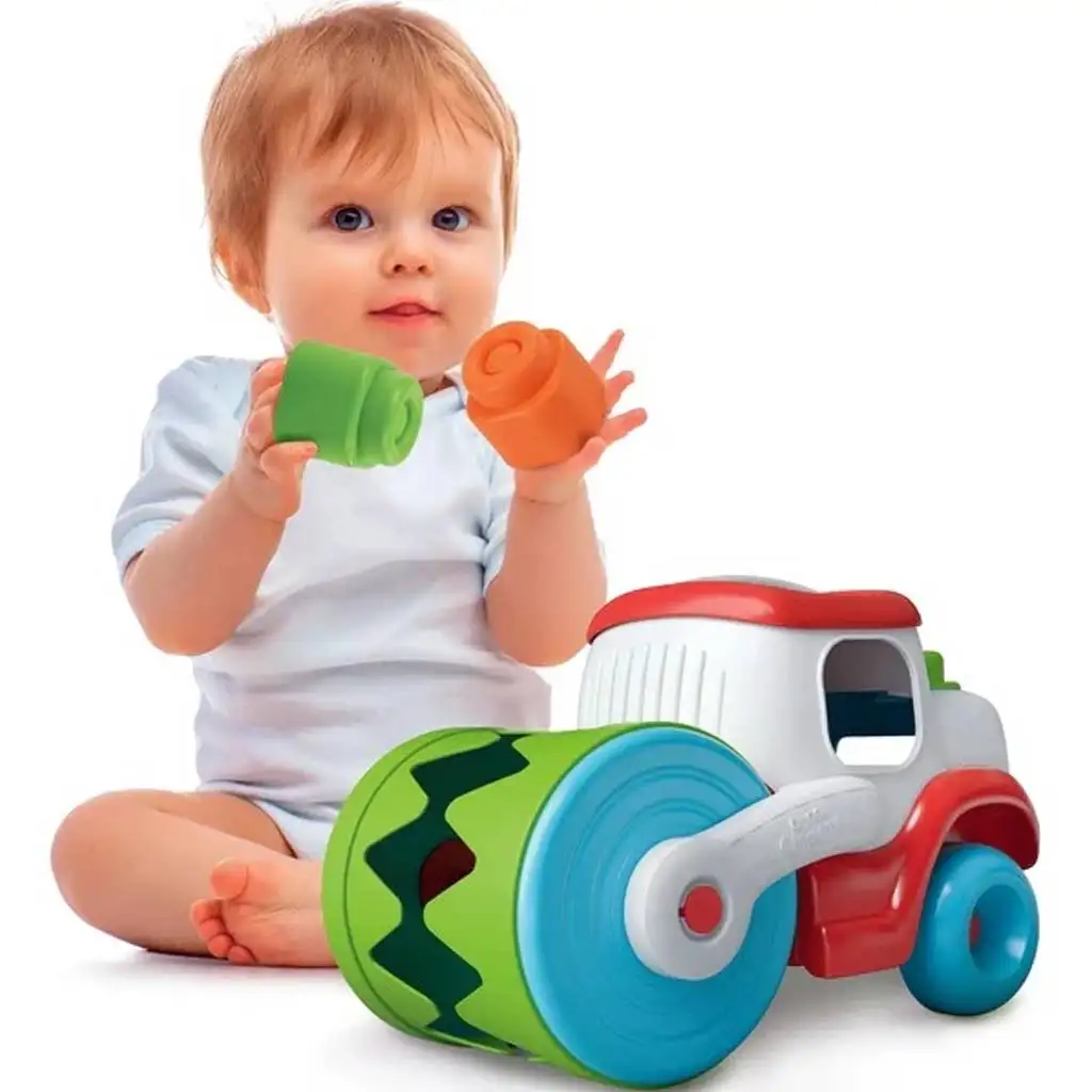 Odkrijte veselje dotika, prepoznavanja oblik in gibanja z delovnim vozilom Clemmy Sensor, namenjenim najmlajšim – tokrat v obliki super simpatičnega valjarja! Ta del serije Clementoni Soft Clemmy je posebej zasnovan za potrebe dojenčkov, starih od 6 do 36 mesecev: z varnimi, mehkimi materiali, živahnimi barvami in senzoričnimi elementi, ki spodbujajo čute in razvijajo fino motoriko.