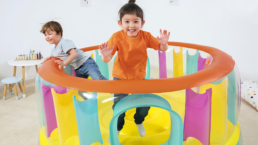 malčke aktivne in zabavane do pomladi z CoComelon Big Bouncer od Bestwaya. Ta igra se lahko postavi notri ali zunaj in pomaga otrokom sprostiti svojo energijo, ne da bi starši morali vložiti preveč truda.Kot mati majhnega otroka je moja osebna lestvica za ocenjevanje igrač naslednja: 1. Ali lahko pijem kavo več kot tri sekunde, medtem ko se moj otrok igra, 2. Ali se lahko moj otrok igra brez poškodb sebe in drugih, in 3. Ali mu pomaga sprostiti odvečno energijo? Trenutno je njegova najljubša dejavnost plezanje na pohištvo in skakanje z njega, zato ni veliko igrač, ki bi ustrezale obema pogojema, vendar to
