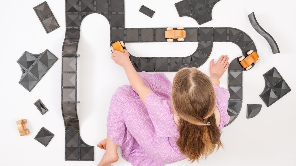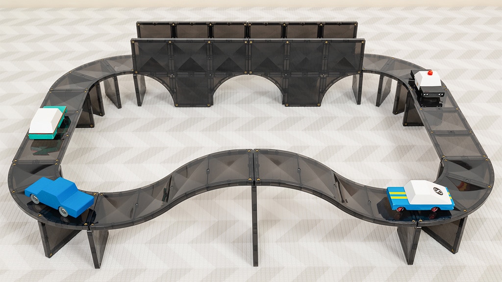Ta komplet predstavlja elegantne črne ploščice in nove oblike ploščic v zbirki Connetix. Navdihnjene z resničnimi potmi, te nove magnetne ploščice postavljajo otroško domišljijo na vozniški sedež, medtem ko ustvarjajo edinstvene poti za katerikoli igralni avtomobil. Poleg tradicionalnih kvadratnih ploščic komplet vsebuje tudi loke, križišča, četrtinske kroge, dolge rampe in kratke rampe. Otroci lahko uporabijo vseh 48 kosov za načrtovanje lastnih edinstvenih letališč, skate parkov, mest in še veliko več.