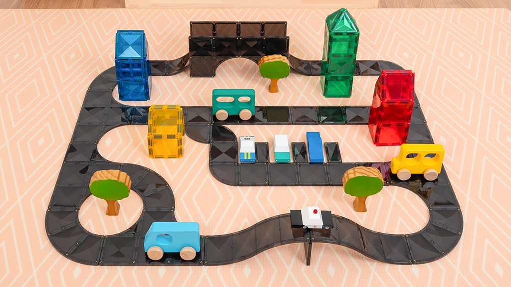 Prava STEM igra, ki otroke navdihuje, da se naučijo osnov urbanističnega načrtovanja in inženiringa. Poleg tega lahko odkrijejo tudi pojme gravitacije, gibanja in svetlobe. Igra je odprtega tipa, spodbuja ustvarjalnost in omogoča, da se z njo hkrati igra več otrok. Tako lahko ne le razširijo svoje znanstveno znanje, temveč tudi razvijajo timsko delo in komunikacijske veščine. Med igro lahko otroci gradijo lastna mesta, eksperimentirajo z različnimi strukturami in razumejo, kako delujejo tehnologije, ki jih uporabljamo v vsakdanjem življenju. Ta igra ni le zabavna, ampak tudi poučna, kar lahko dolgoročno prispeva k uspehu otrok na znanstvenih in tehnoloških področjih.To ponuja odlično alternativo tradicionalnim železniškim kompletom, ki običajno vsebujejo zelo malo delov in jih je težje sestaviti za mlajše otroke.