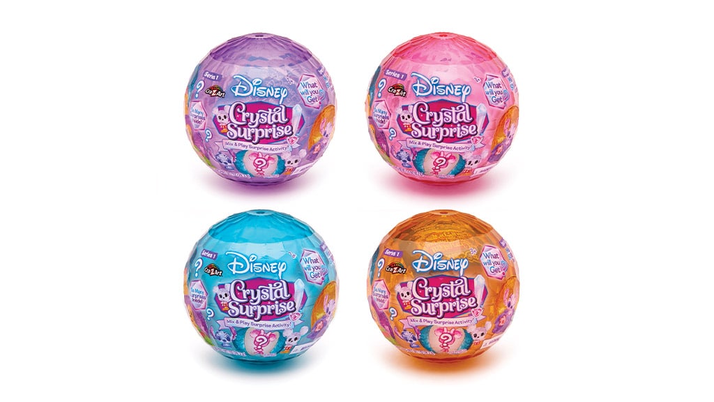 Vsaka presenečenja krogla vsebuje Disneyjevo kristalno figuro, vrečko materiala Cra-Z-Sand ali Cra-Z-Slimy ter dva dodatka. Zbrati je mogoče več kot 12 različnih kosov. Te presenečenja krogle ponujajo razburljivo izkušnjo tako zbirateljem kot oboževalcem Disneyja, saj vsako odpiranje krogle pomeni novo pustolovščino. Podrobna izdelava kristalnih figur in kreativna uporaba različnih materialov omogočata igro in sprostitev domišljije. Zberi jih vse in odkrij čarobni svet Disneyja!