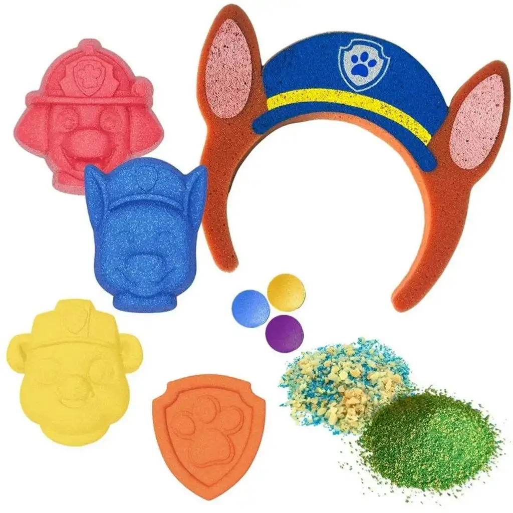 Set skriva različna presenečenja: kopalne bombe v obliki likov, kopalne soli, šumeče kroglice ter super kul penasti naglavni trak z ušesi Chasea – da se otrok lahko počuti kot pravi mali reševalni kuža! Med šestimi različnimi aromami najdete vonj banane, jagode, sladkorne pene, vanilije in še veliko drugih dobrot, tako da bo vsaka kopel nova izkušnja.
