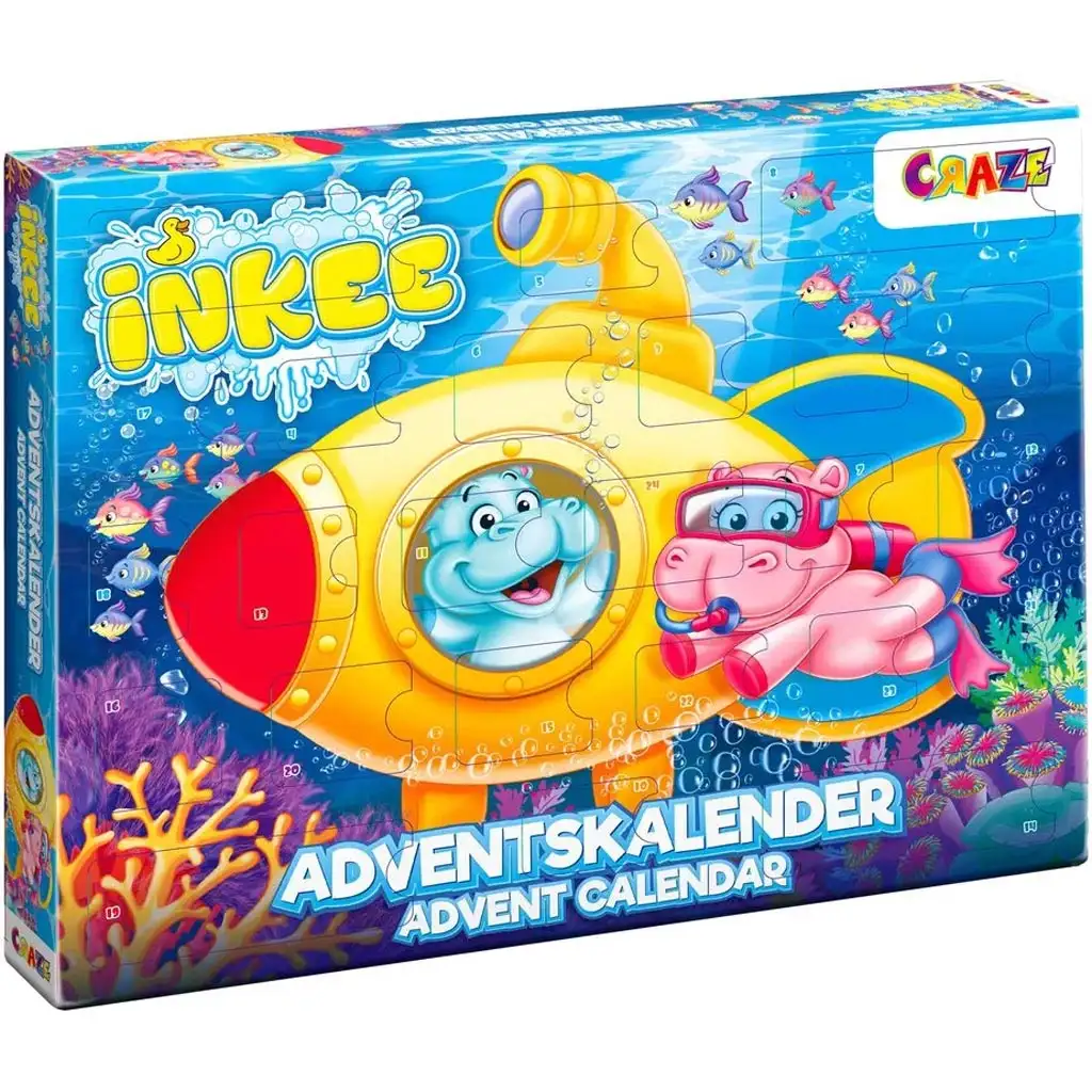Craze Inkee adventni koledar ima temo vesele podvodne dogodivščine, v kateri dva simpatična vodna lika – moder in rožnat povodni konj – popeljeta najmlajše v kraljestvo mehurčkov. Vsak dan prinese novo igračo ali dodatek, zato otroci z nestrpnostjo pričakujejo ne le božič, temveč tudi kopanje, ki ga imajo tako še raje. Kopalne bombe očarajo s prijetnim vonjem in pisanimi mehurčki, različno oblikovane gobice pa vabijo k ustvarjalnemu čofotanju.
