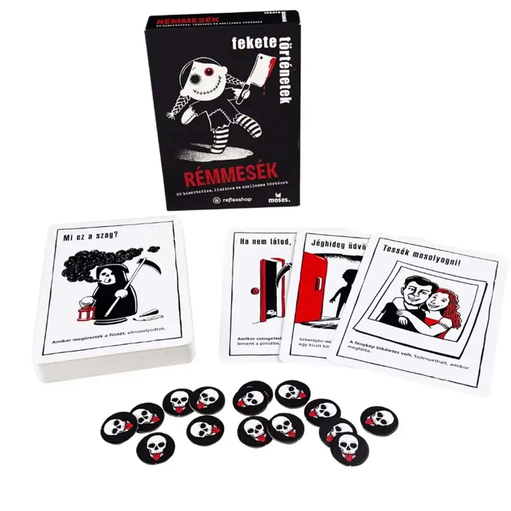 Pripravi se na igralno izkušnjo, ob kateri ti bo tekla kurja polt po hrbtu – a kljub temu boš skozi smeh razvozlal najbolj temačne skrivnosti! Črne zgodbe: Strašljive pravljice so res posebna družabna igra, ki vsebuje 50 bizarnih, srhljivih in hkrati zabavnih zgodb, kjer se prepletajo resnične smrti in morbiden humor. Ni vsaka skrivnost ima srečen konec… toda prav to naredi igro še bolj napeto!