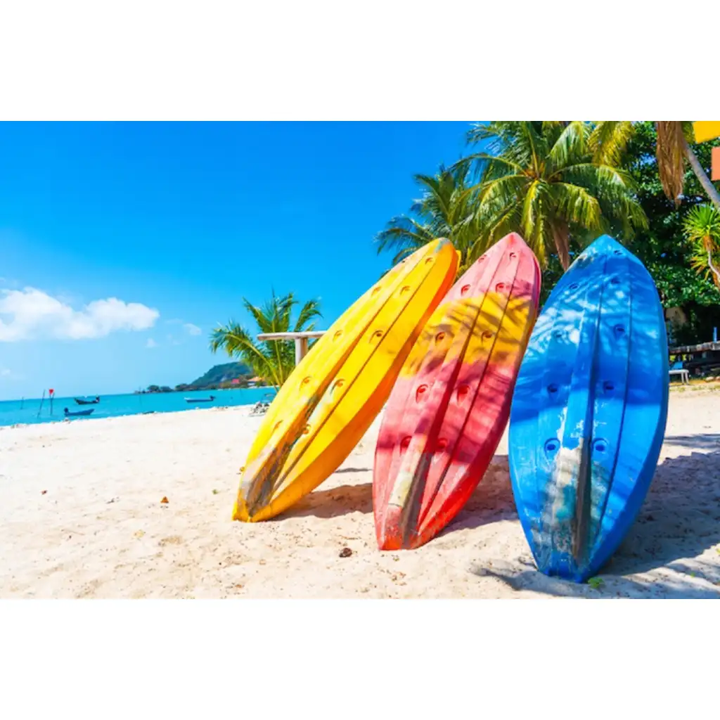 Prinesi domov poletno obmorsko vzdušje z diamond painting kompletom »Deska za deskanje«! Ta 40x50 cm velik komplet za diamond painting prikazuje sončno obalno prizorišče, kjer tri živahno obarvane deske za deskanje – rumena, rdeča in modra – v senci palm čakajo na valove. Vsaka podrobnost slike prikliče občutek poletnih počitnic in brezskrbnih trenutkov – odlična izbira, če želiš v svoj dom vnesti malo poletnega vzdušja.