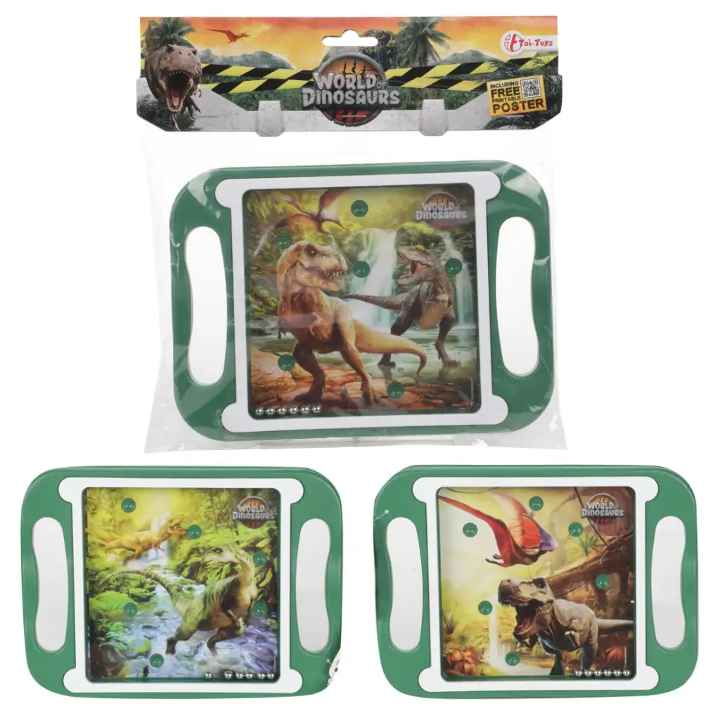 Ta spretnostna igra z dinozavri je odlična izbira, če želiš, da tvoj otrok med zabavo razvija tudi ročne spretnosti in koncentracijo. Naloga je preprosta: kovinske kroglice moraš z nagibanjem plošče usmerjati v ustrezne luknje. Igra je na voljo z različnimi dinozavrovskimi ozadji, tako da je vsaka različica razburljiva pustolovščina v svetu dinozavrov! Zaradi kompaktne velikosti jo lahko vzamete s sabo kamorkoli – idealna je tudi za potovanja.