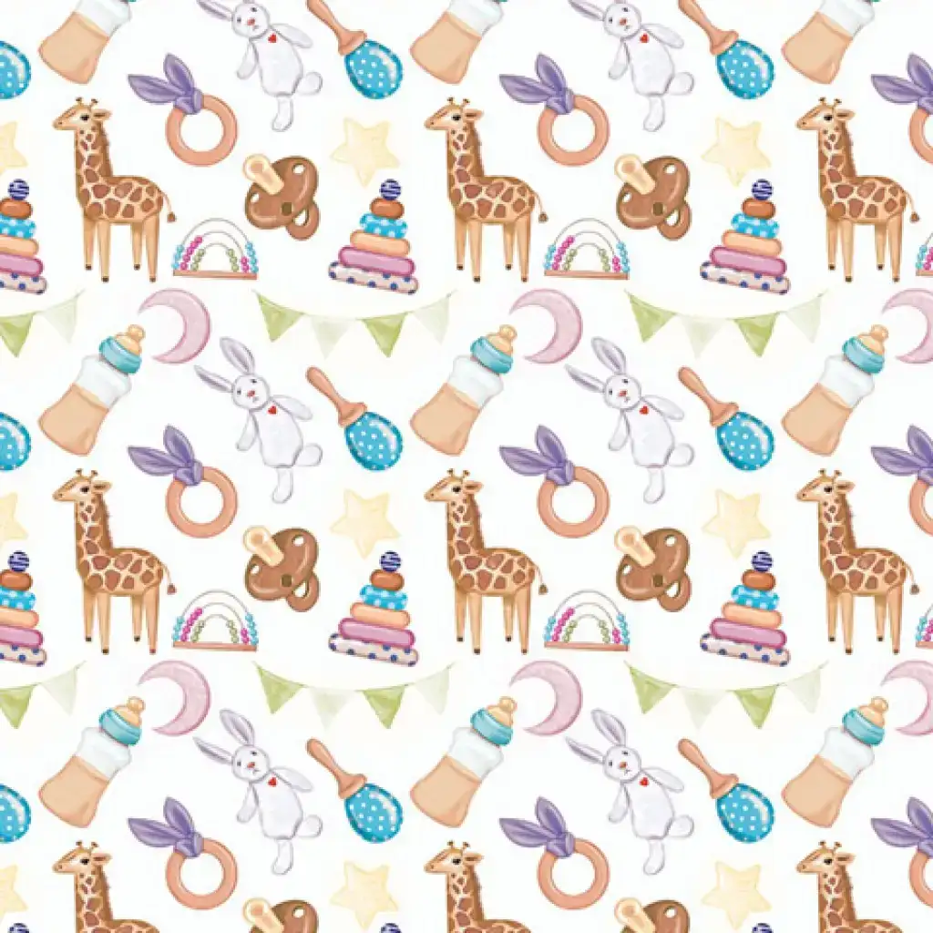 Ta ovojni papir je lahko odlična izbira, če želiš zaviti darilo za dojenčka, saj je njegov vzorec res prikupen in uniseks. Papir meri 100x70 cm, tako da lahko brez težav zaviješ tudi večja darila. Papir je trpežen in ga je enostavno prepogibati, zato ti ni treba skrbeti, da bi se darilo med prevozom poškodovalo. Poleg tega ga je mogoče tudi lepiti, kar omogoča še varnejše pritrditev darila na papirju. Vzorec je res ljubek in vesel; motivi kot so dudica, ropotulja, grizalo, plišasti zajček in žirafa bodo zagotovo narisali nasmeh na obraze. Papir je uniseks, zato lahko z njim enostavno zaviješ darila tako za fantke kot deklice. Če iščeš ovojni papir, ki se popolnoma poda darilom za dojenčke, potem je ta enostavno prepogljiv, trpežen in z veselimi motivi lahko popolna izbira.