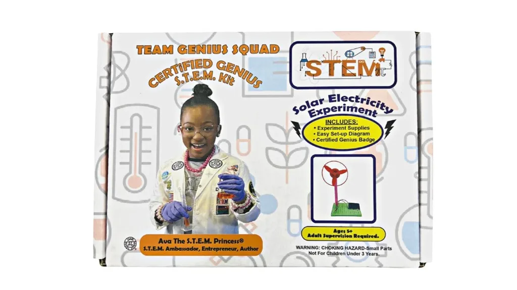 Vsak komplet vsebuje orodja, za otroke pripravljene, s slikami ilustrirane navodila, ter certifikat Certified Genius. V kompletu Solar Electricity STEM Experiment Kit otroci uporabljajo plastični ventilator, motor in plastično ohišje, plastično stojalo, ter solarno ploščo, da ustvarijo ventilator, ki deluje na sončno energijo.