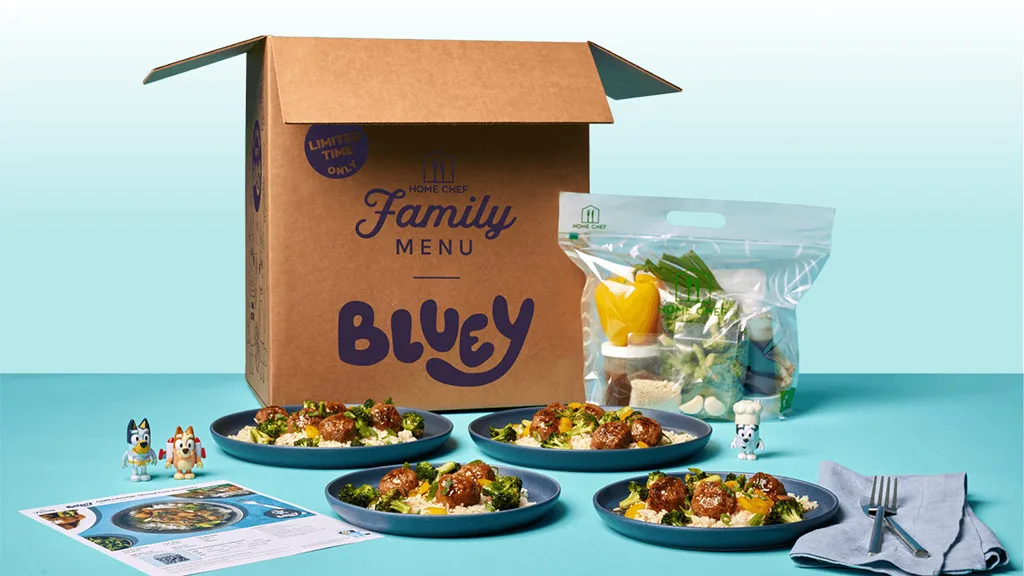 Priprava hrane je težka, še posebej za družine z majhnimi otroki. Home Chef olajša nekaj obrokov na teden z uvedbo serije jedi, navdihnjenih z Bluey!