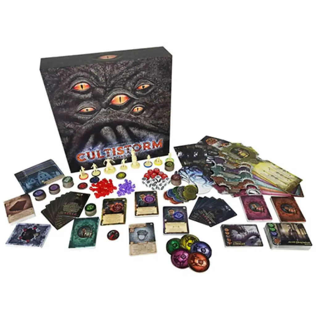 Cultistorm je kooperativna družabna igra, v kateri igralci prevzamejo vloge detektivov posebnega oddelka, ki sta ga skupaj ustanovila Urad za preiskave zvezne države Massachusetts in Univerza Miskatonic v začetku 20. stoletja v Ameriki. Na območju Arkham se pojavlja množica strašljivo iznakaženih, neznanih ljudi z namenom, da s temnimi obredi prikličejo svoje gospodarje iz kozmičnega prostora in časa, Neizmerne Starešine. Skupni cilj preiskovalcev je, da se zanašajo na sposobnosti drug drugega, da zatrejo kultiste, ki se zbirajo na lokacijah, in preprečijo, da bi se v zadostnem številu zbrali in priklicali Neizmerne Starešine. Če se to vseeno zgodi, morajo pregnati vse starodavne grozote, preden prestopijo v naš svet in prinesejo konec sveta, kot ga poznamo. Med igro lahko preiskovalci iščejo uporabne predmete, prosijo za pomoč domačine in pridobijo dolgo pozabljeno znanje. Tako lahko pridobijo številne možnosti, s katerimi lahko uspešno podpirajo svoje tovariše. Nenehna komunikacija in strateško razmišljanje sta nepogrešljiva za premagovanje kultistov in zagotavljanje varnosti lokacij!