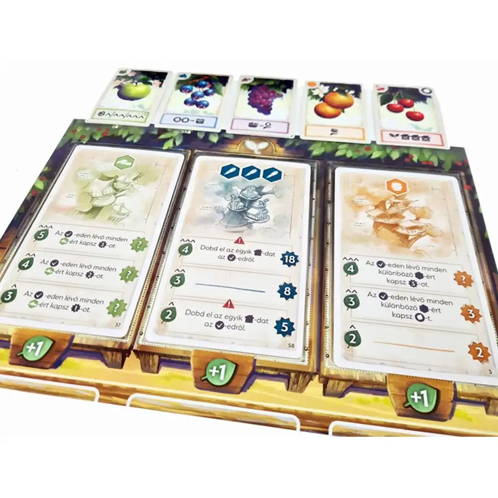 Prodane karte sadežev dajejo posebne sposobnosti, na primer lahko zbereš več denarja ali izvedeš posebne akcije. Prav tako moraš paziti na upravljanje kovancev: denar, pridobljen takoj, moraš porabiti v danem krogu, medtem ko lahko zneske, shranjene v skrinji, obdržiš za kasneje. Svoje stavbe lahko razvijaš po stopnjah, vsaka popolnoma zgrajena stavba pa prinaša posebne bonus točke na koncu igre.