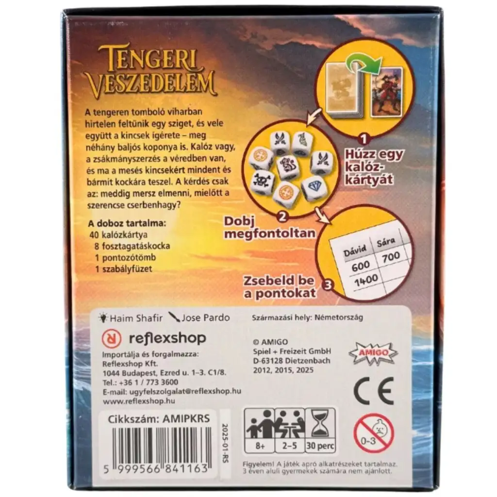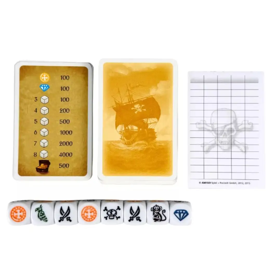 Piratske karte prinašajo presenetljive preobrate – naj gre za napad zombijev, brodolom ali nepričakovan mir – vsaka runda zato ponuja novo strateško izziv. Cilj je zbrati 8000 točk, a z enim genialnim metom lahko zmagaš tudi takoj! Zaradi enostavnih pravil in hitrih krogov je igra idealna za družinska ali prijateljska srečanja, kjer sta zabava in napetost zagotovljena.