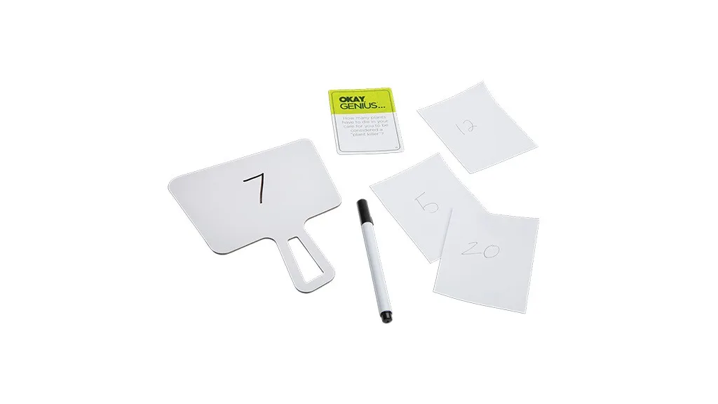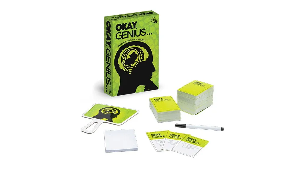 Na resnična življenjska vprašanja, kot je "Koliko dreves tvori majhen gozd?", lahko najdete odgovor v tej hilaris družabni igri za lomljenje ledu. V igri Okay, Genius... ima vsak priložnost, da postane genij!V tej igri igralci oblikujejo mnenja o smešnih vprašanjih, kot so na primer "Koliko je popolno število klovnov, ki pridejo iz avtomobila klovnov?" ali "Koliko parov spodnjega perila bi moral imeti?" Vsakdo deli svoje mnenje, vendar je "genij" kroga vedno prav.