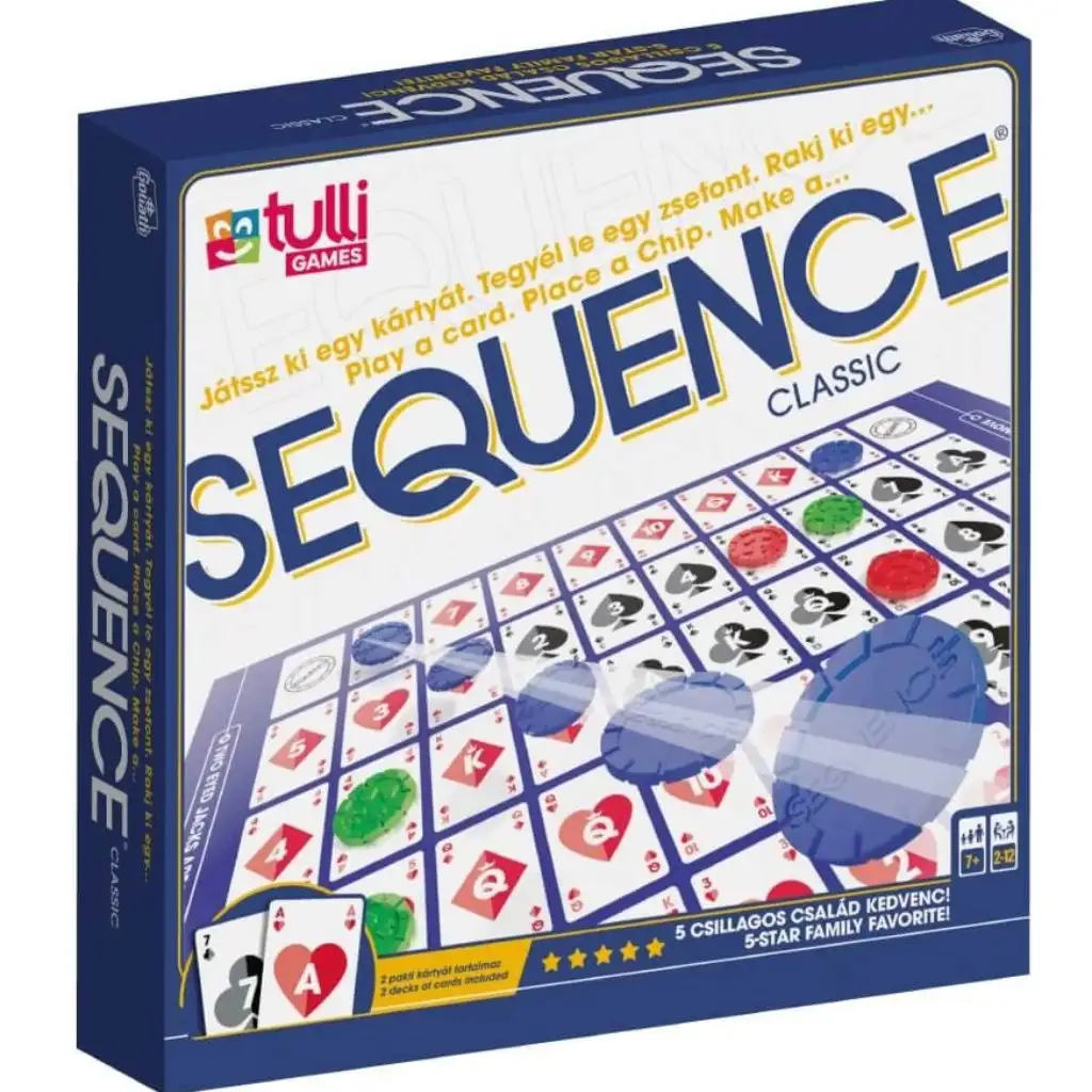 Če iščeš vznemirjenje, je družabna igra Sequence ustvarjena zate! S kartami v roki moramo na igralni plošči ustvariti zaporedja vodoravno, navpično ali diagonalno. To lahko dosežemo s pomočjo kart in žetonov ali pa preprečimo nasprotniku, da to stori. Igra se lahko igra v dvoje ali v ekipah.