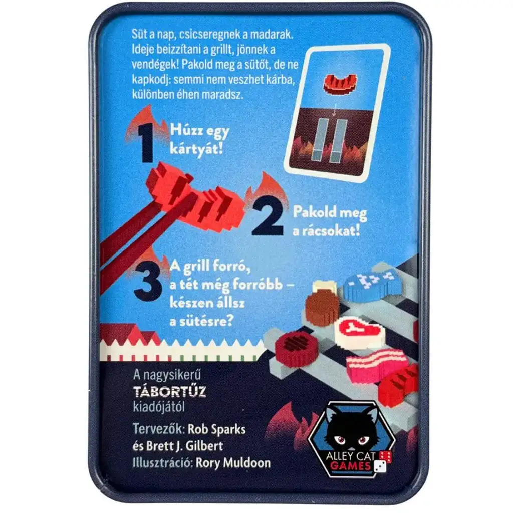 Bistvo igre je preprosto, a izjemno zabavno: potegni karto, naloži ustrezen kos mesa ali zelenjave na mini žar in poskusi ohraniti ravnotežje na rešetkah – vse to s pinceto! A pozor: če si preveč požrešen ali preveč neroden, lahko vse z žara pade dol in ostaneš lačen!
