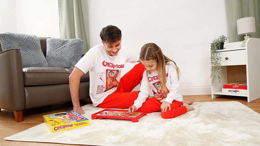 Monopoly PJs vsebuje sivo majico z logotipom Monopoly, identificirano z polji Go, Brezplačno parkiranje, Zapor in Pojdi v zapor, v paru s temno modrimi hlačami. Mouse Trap komplet vsebuje temno modre hlače in sivo srajco z logotipom Mouse Trap. Operation komplet vsebuje živo rdeče hlače in belo srajco, na kateri je vidna igralna plošča in logotip Operation. Nazadnje, Twister komplet vsebuje živo rdeče hlače in belo srajco z igralno preprogo Twister, na kateri je napis "Lets Twister!". Kolekcija prav tako vključuje Cluedo in Connect 4 pižame.
