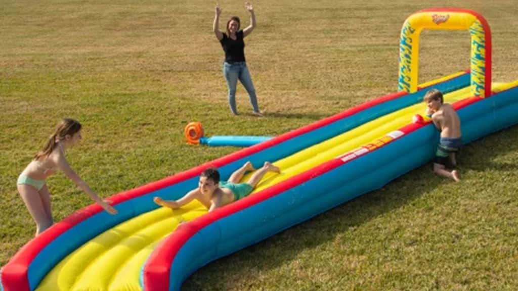 Družine lahko dodatne informacije najdejo na spodnji povezavi. Informacije so že zdaj na voljo, így lahko pravočasno najdejo ustrezno travnato površino, ki jo lahko namenijo temu, preden se začne poletna zabava! Ne zamudite priložnosti, da se pripravljeni in z veseljem podate v poletne programe, saj skupna doživetja in čas, preživet v naravi, nudijo nepozabne spomine za vsako družino.Ta tobogan Wham-O Slip N Slide je dolg 30 čevljev (približno 9 metrov) in ga je mogoče s priloženo tlačilko napihniti v trenutku. Priložena je vodna brizgalka in zračna blazina, ki med drsenjem zagotavlja dodatno udobje in varnost. Idealna izbira za poletno zabavo, saj lahko tako otroci kot odrasli uživajo v osvežujočih, veselih trenutkih na vrtu ali na prostem. Tobogan iz trpežnega materiala je zanesljiv tudi pri dolgotrajni uporabi in ga je enostavno čistiti.