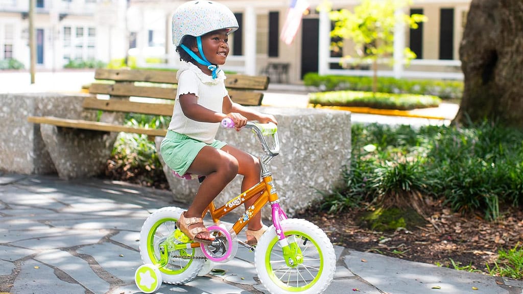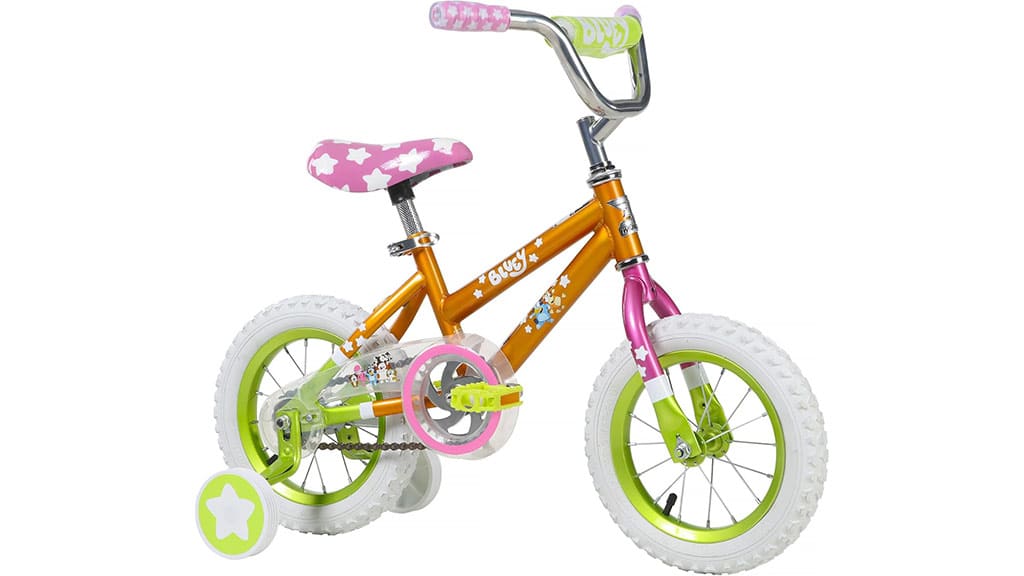 Ta 12-palčni kolo ima živahno roza, zeleno in oranžno barvno kombinacijo ter grafike, ki jih navdihuje Bluey. Otroci se lahko naučijo voziti kolo s pomočjo odstranljivih pomožnih koles in enostavno uporabne nožne zavore. To kolo je idealna izbira za malčke, ki šele začenjajo odkrivati veselje kolesarjenja. Barvit dizajn in ljubki vzorci naredijo učenje še bolj privlačno, medtem ko varnostni zavorni sistem in stabilnost, ki jo zagotavljajo pomožna kolesa, zagotavljajo tudi mir staršem.