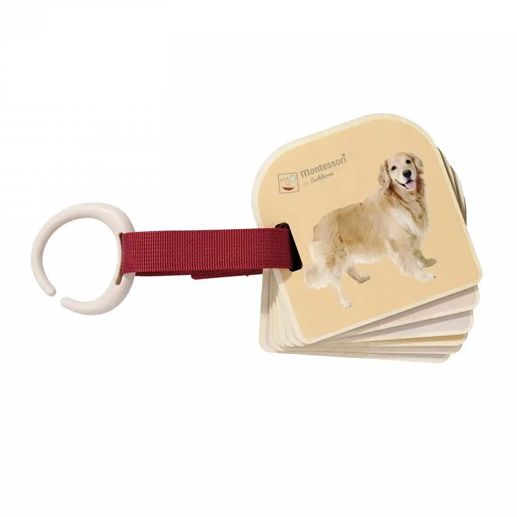 Knjižica je povezana s praktičnim tekstilnim trakom in plastičnim obročkom, zato jo je enostavno pritrditi na voziček, torbo ali posteljico – vedno jo imate lahko pri roki, doma ali na poti. Otrok lahko knjižico lista, pregleduje slike ter imenuje živali, vi pa mu lahko pri tem pomagate z učenjem novih besed, posnemanjem zvokov ali pripovedovanjem zgodb o njih.