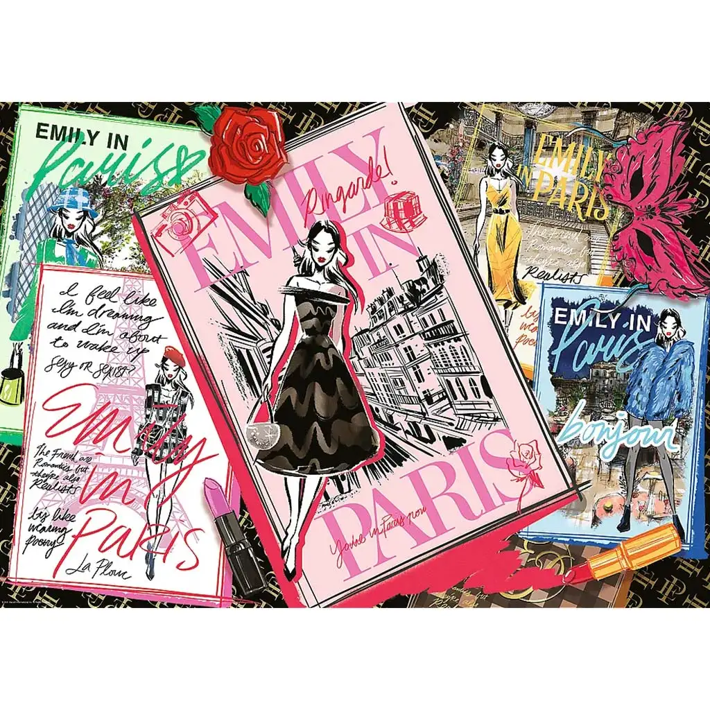 Stopi v svet mode, stila in ljubezni s 1000-delno sestavljanko Emily v Parizu – Moda in romantika! Ta posebna sestavljanka je navdihnjena s priljubljeno serijo »Emily v Parizu« in z očarljivo atmosfero popolnoma zajema bistvo pariškega življenjskega sloga. Slika je polna ikoničnih elementov: elegantne ženske figure, naslovnice revij, vrtnice, šminke, napisi ter slikovite pariške ulice – kot bi sestavljal/a strani modne revije.