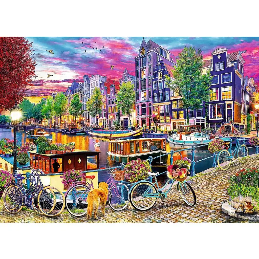 Odkrij najlepša evropska mesta, ne da bi zapustil svoj dom! Treflova sestavljanka „Evropske prestolnice”, ki vsebuje 2 x 500 kosov, prikazuje dve ikonični lokaciji z osupljivimi podrobnostmi in bogatimi, toplimi barvami: romantični Pariz in slikoviti Amsterdam. Ta sestavljanka ni samo sproščujoča zabava, temveč vas tudi vizualno popelje v svet kontinentalnih doživetij.