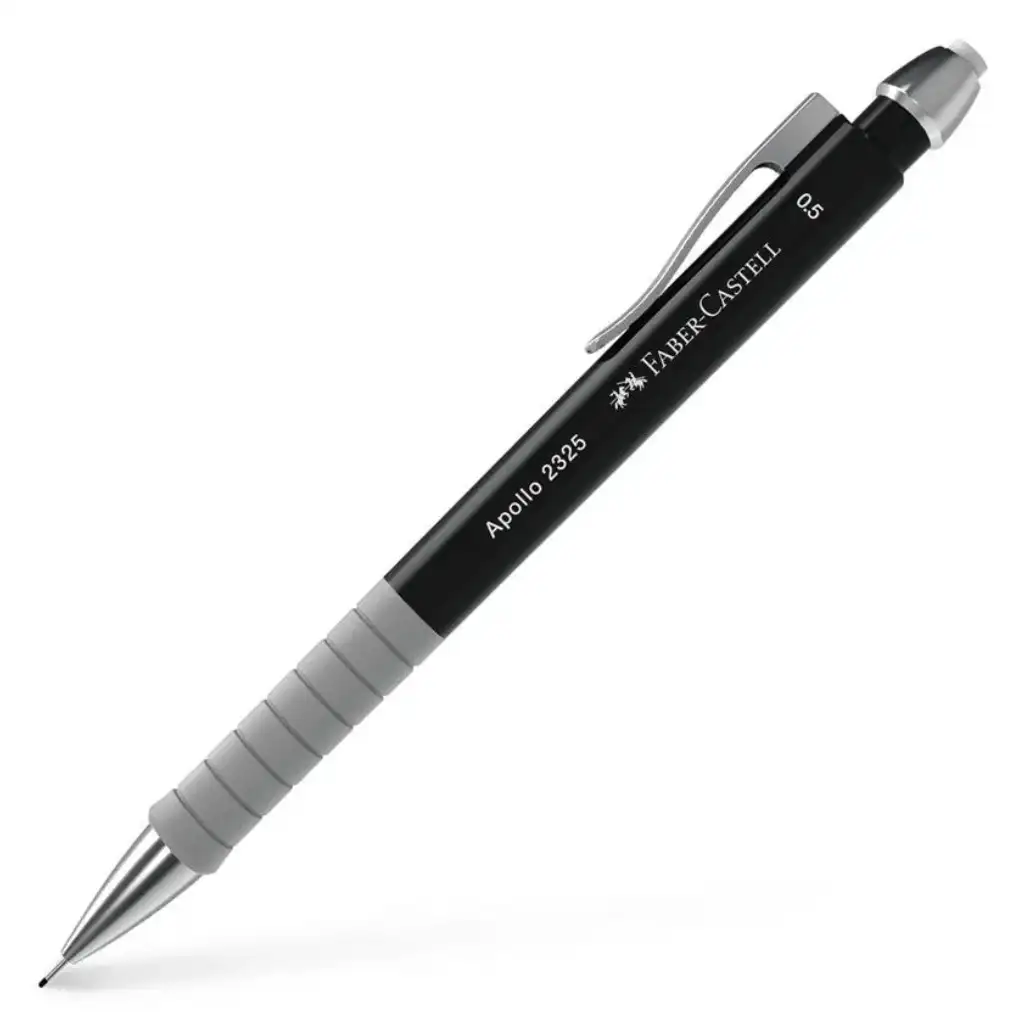 Faber-Castell Apolló 2325 tehnični svinčnik z 0,5 mm mino je popolna izbira za vse, ki iščejo kakovostno, udobno in zanesljivo pisalo za vsakodnevno uporabo – naj bo to za šolske zapiske, pisarniško delo ali tehnično risanje. Elegantna črna zasnova, srebrna sponka in natančne podrobnosti mu dajejo moderen videz, hkrati pa zagotavljajo vrhunsko kakovost, značilno za blagovno znamko Faber-Castell.