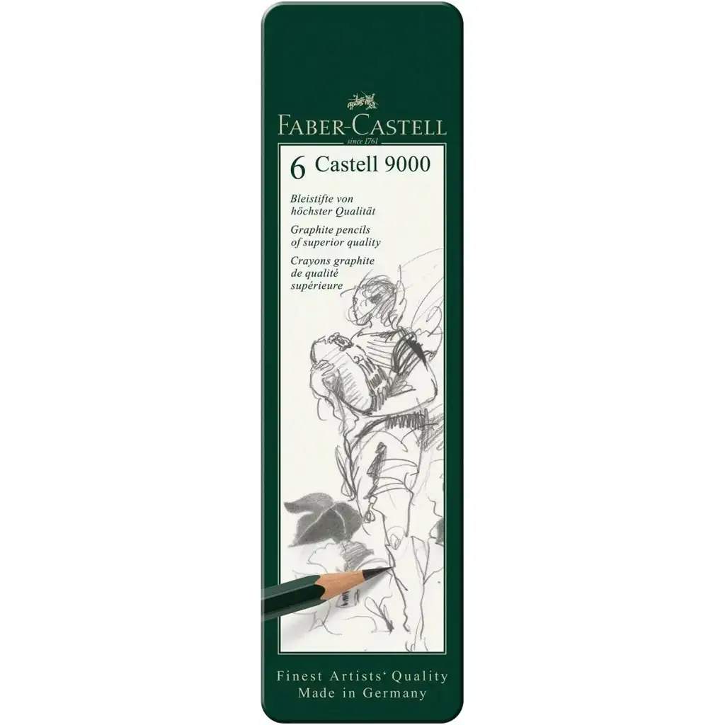 Faber-Castell: Castell 9000 grafitni svinčniki, set 6 kosov v kovinski škatliFaber-Castell: Castell 9000 grafitni svinčniki, set 6 kosov v kovinski škatli