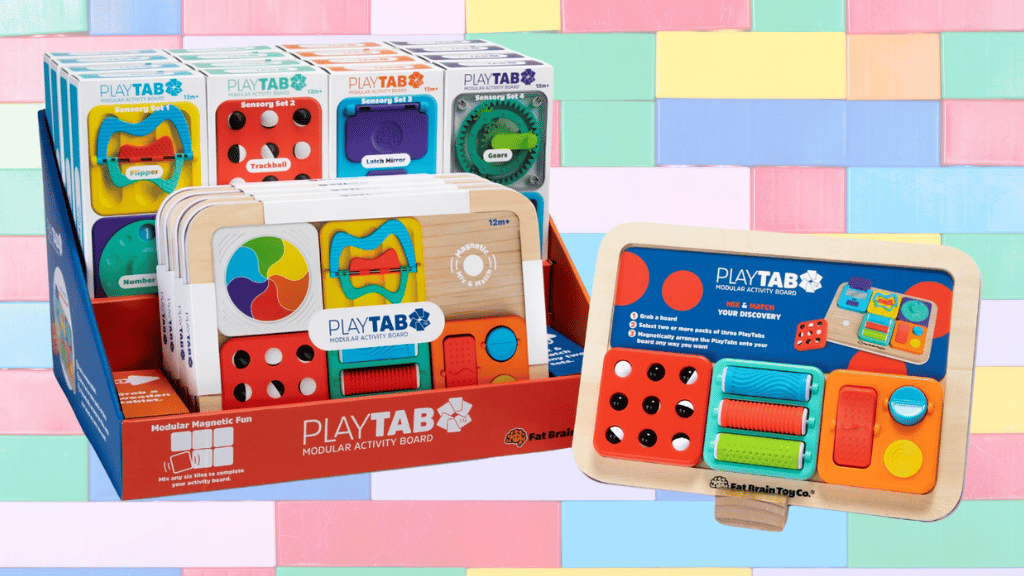 Modularna igralna plošča iz ponudbe Fat Brain Toys je interaktivna, senzorična igrača za otroke, stare 12 mesecev in več. Ta inovativna aktivnostna plošča je zgrajena na trdni leseni osnovi, ki vključuje šest magnetno pritrjenih ploščic, ki jih je enostavno zamenjati. 12 edinstvenih ploščic omogoča otrokom ustvarjanje edinstvene igralne izkušnje, ki spodbuja njihovo domišljijo in radovednost. Vsaka ploščica ponuja različne funkcije, vključno z vrtečimi se zobniki, piskajočimi gumbi, barvnimi kroglicami, ki se kotalijo skozi labirint, in klikajočim gumbom.