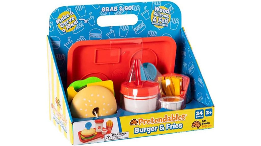 Fat Brain Toys je razširil meni Pretendables s hamburgerji in pomfrijem! S tem 24-delnim kompletom lahko otroci igrajo vlogo pravega obroka in pripravijo okusno zabaven hamburger. Komplet vsebuje vse potrebne elemente, da otroci kreativno in zabavno preživijo čas, medtem ko razvijajo svojo domišljijo in socialne veščine. Med igro se otroci lahko naučijo osnov priprave hrane in uživajo v veselju skupne igre s prijatelji ali družinskimi člani.
