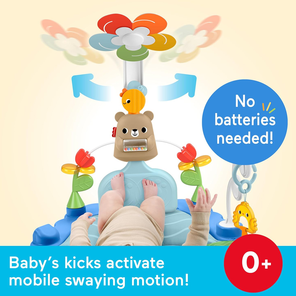 Interaktivna igralna preproga Mattel Fisher-Price z medvedkom je popolna izbira, če želite že od novorojenčka naprej na igriv način razvijati čutila in gibanje svojega dojenčka. Na mehki, barviti igralni preprogi leže ali na trebuhu lahko malček odkrije različne teksture, zvoke in oblike. Vrteči se cvet in viseče igrače, povezane s centralnim medvedkom, reagirajo na otrokove gibe, zato vsako brcanje prinese razburljivo izkušnjo. Interaktivni elementi pomagajo pri razvoju koordinacije oči in rok, hkrati pa se lahko malček opazuje tudi v ogledalu. Praktično je, da deluje brez baterij, zato je vedno pripravljen za igro doma ali tudi na poti.