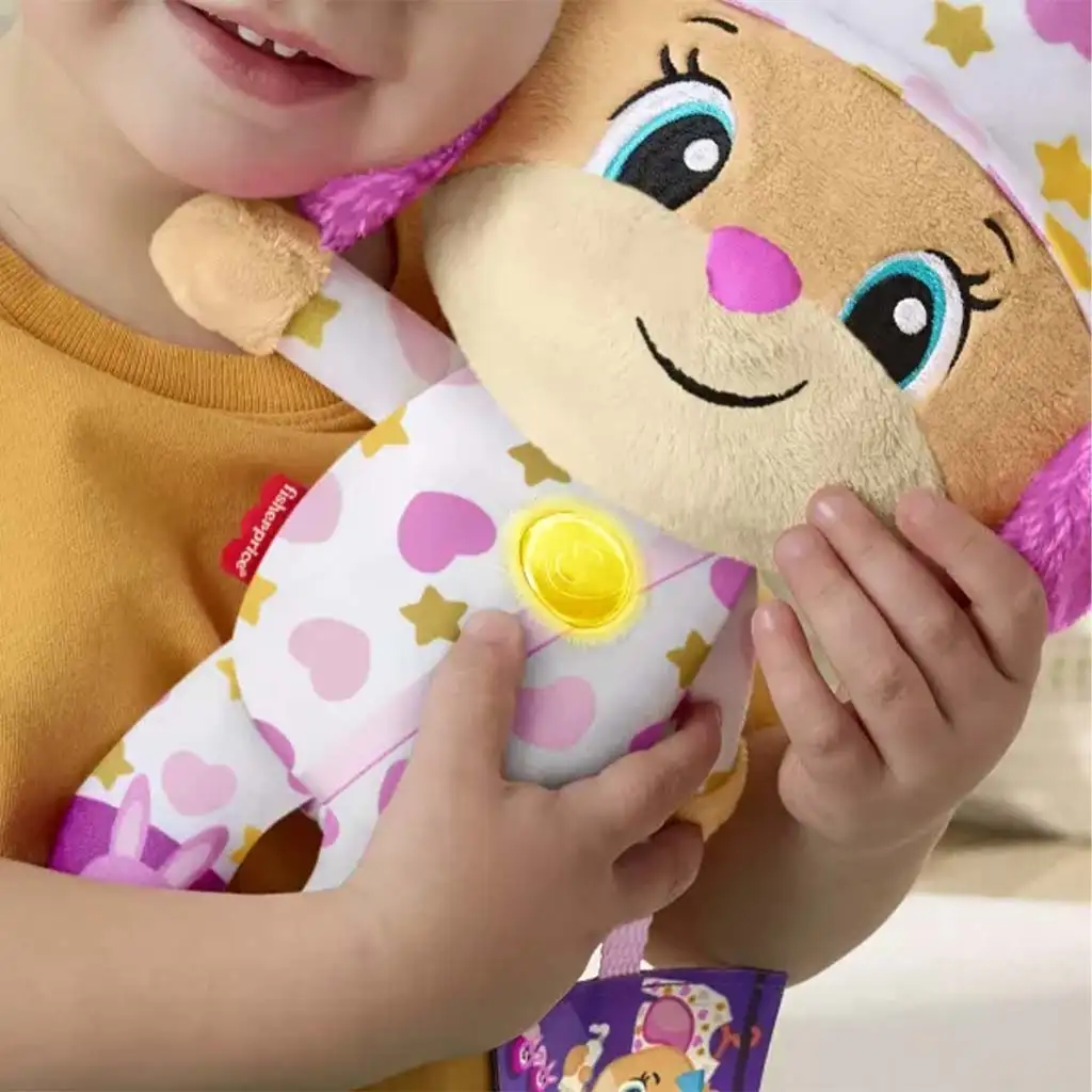 Fisher-Price: Lepe noči kužika-sestrica je ljubek, mehak plišast prijatelj za uspavanje, ki je bil posebej zasnovan za pomiritev najmlajših in pomoč pri njihovem uspavanju. Ta simpatičen kužek ni le prikupen za objemanje, temveč s svojimi nežnimi lučkami in pomirjujočo glasbo podpira večerni ritual vašega dojenčka, da bo uspavanje varno in prijetno doživetje za vas oba.
