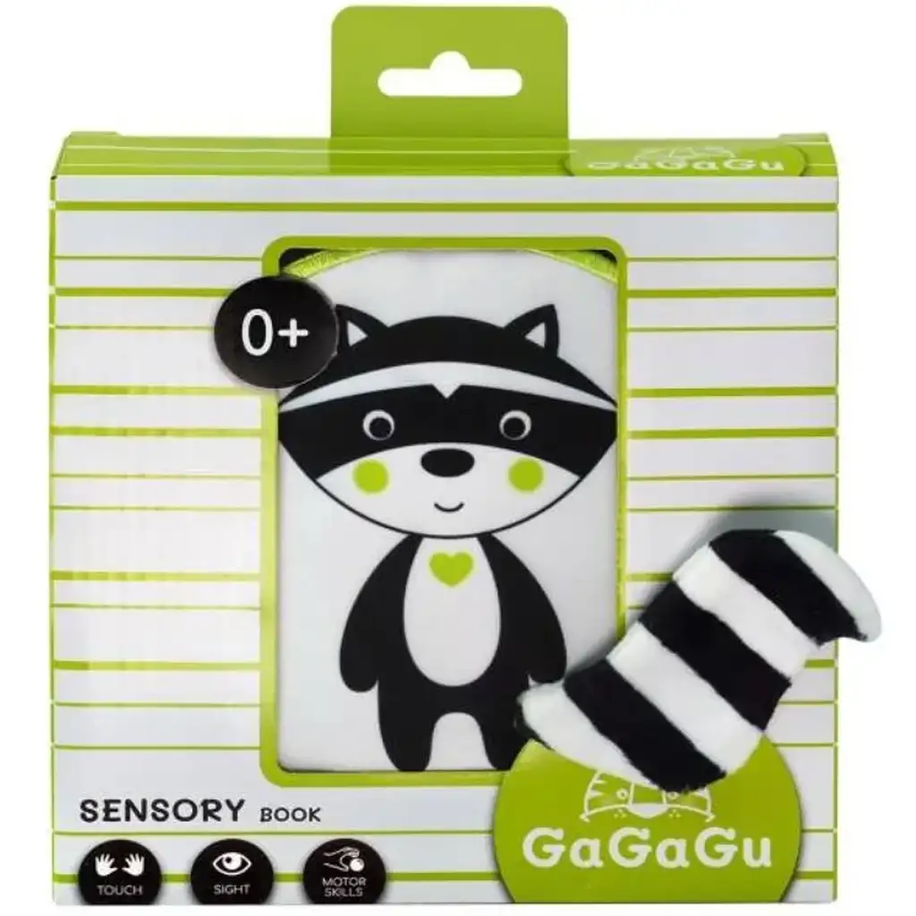 Razvojna otroška knjiga GaGaGu z motivom rakuna je popolna prva knjiga za najmlajše, ki na igriv način podpira senzorični razvoj. Ta mehka, tekstilna otroška knjiga ni le zabavna, ampak tudi pomaga pri razvoju vida, dotika in motoričnih sposobnosti dojenčka, medtem ko je varna za uporabo že od rojstva.
