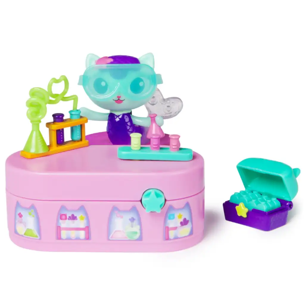 Otroci imajo priložnost raziskovati meje kemije in domišljije, medtem ko igrajo vznemirljive zgodbe pod vodstvom svojega najljubšega lika iz Gabi hiše za punčke. Komplet vsebuje tudi presenečenje, ki vedno prinaša novo pustolovščino!