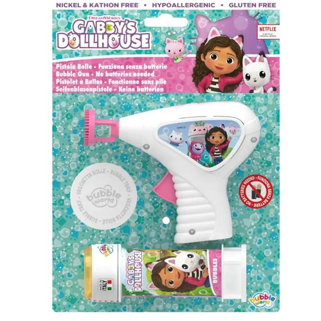 Dizajn pištole je vesel, barvit in posebej prijazen otrokom. Gabi in njeni mali prijatelji na strani pištole zagotavljajo, da bo vsak trenutek pihanja mehurčkov potekal v pravljičnem vzdušju. Popolno darilo za vse oboževalce Gabijine hiše za punčke!