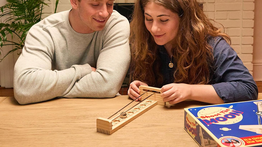 Prva igra izmed treh je **Ustreli luno**, retro priljubljena igra, v kateri je treba kovinsko kroglico usmeriti v različne planetarne luknje za pridobivanje točk. Naslednja igra, **Gradnja stolpa**, zahteva od igralcev, da uravnotežijo geometrijske oblike na nihajoči podlagi. Zadnja igra v trojici je **Kollide**; v tej igri se morajo igralci potegovati, kdo bo prvi postavil vse svoje magnete na igralno polje, ne da bi se ti dotaknili.»Najbolj razburljiva stvar pri teh igrah za nas je, da ponujajo vsestranskost,« pravi Christopher James iz Games4Two. »Ljudje vseh starosti lahko igrajo te igre in se odlično zabavajo. Naj gre za družinski večer, zmenek ali večer s prijatelji, vsak, ki igra, se bo odlično zabaval.«V igri "Shoot the Moon" otroci potrebujejo zanesljivo roko za zmago! Previdno morajo premikati kovinske palice, da spustijo lunino žogo na pravo mesto—igralci pridobivajo točke glede na to, v kateri cilj uspejo spraviti lunine strele. Igra razvija ročne spretnosti in koncentracijo, hkrati pa ponuja razburljiv izziv za vse starosti. Popolna izbira za družinska srečanja in prijateljska tekmovanja.