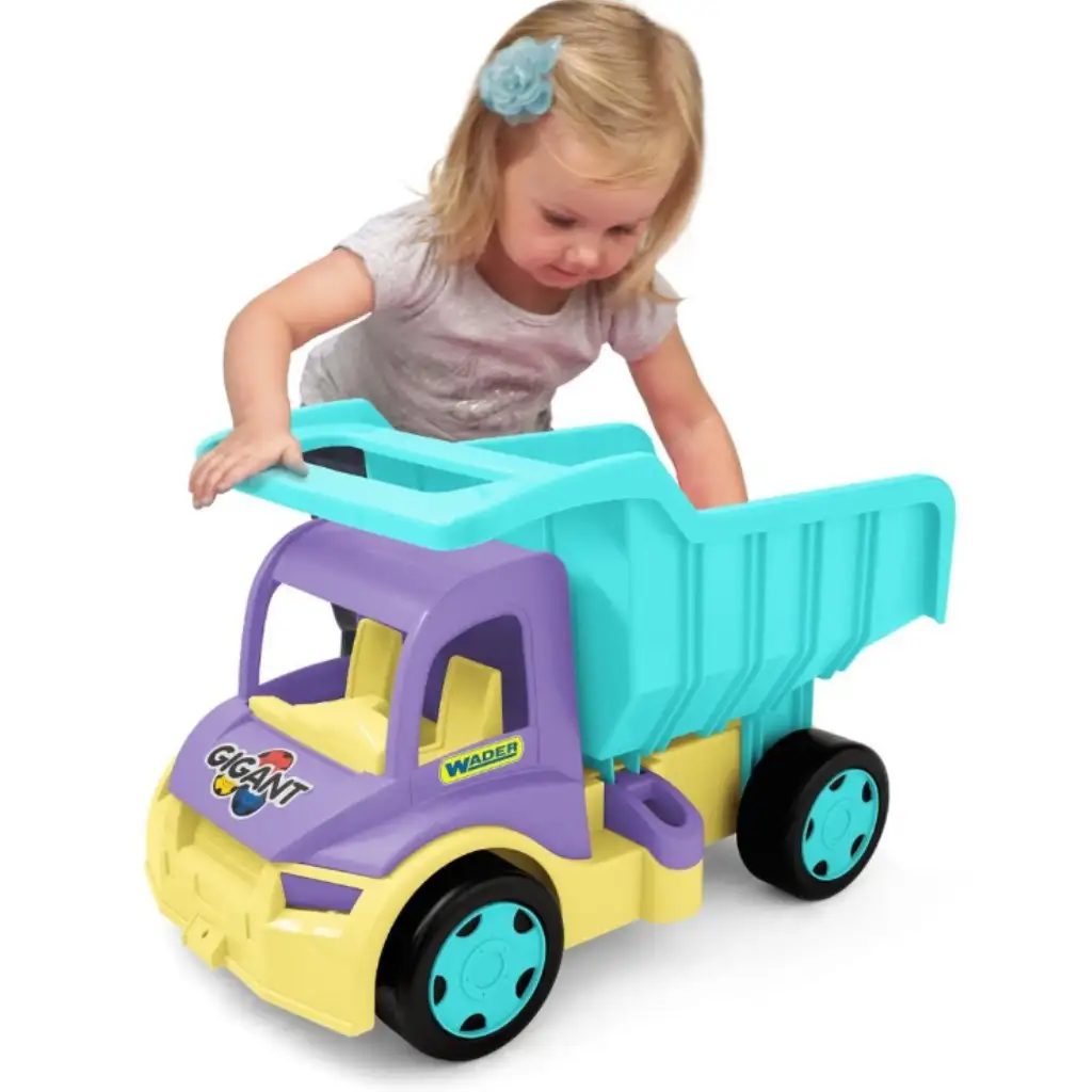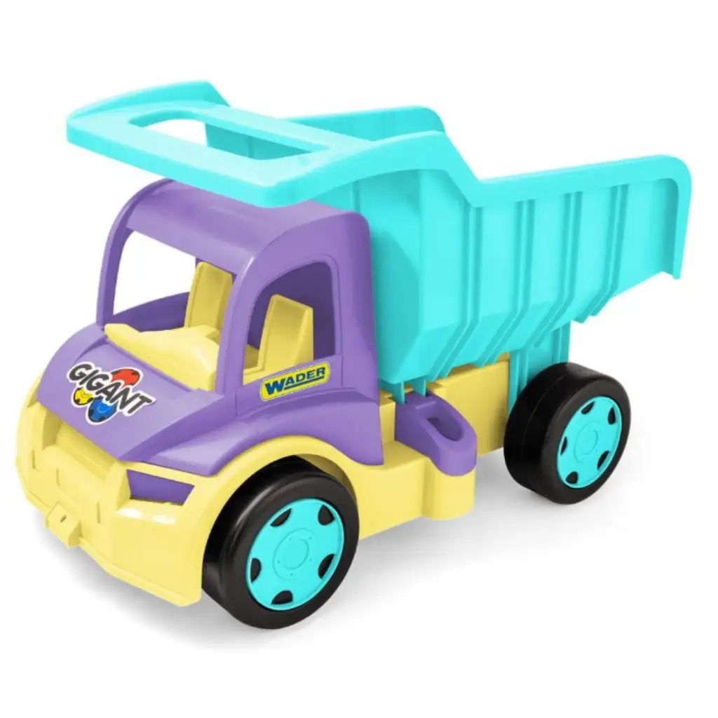 Wader Gigant velikanski tovornjak v vijolično-turkizni barvi bo zagotovo postal najljubši vašega otroka! To kul in hkrati veselo vozilo ni le trpežno, ampak je zaradi nosilnosti do 150 kg tudi izjemno močno. Zahvaljujoč nagibni ploščadi lahko vaš otrok enostavno nalaga in razklada tovor med igro v peskovniku ali doma. Velikost 55 cm je ravno pravšnja, da ga vaš otrok udobno potiska, medtem ko razvija svoje spretnosti in domišljijo. Podarite svojemu otroku ta poseben tovornjak!