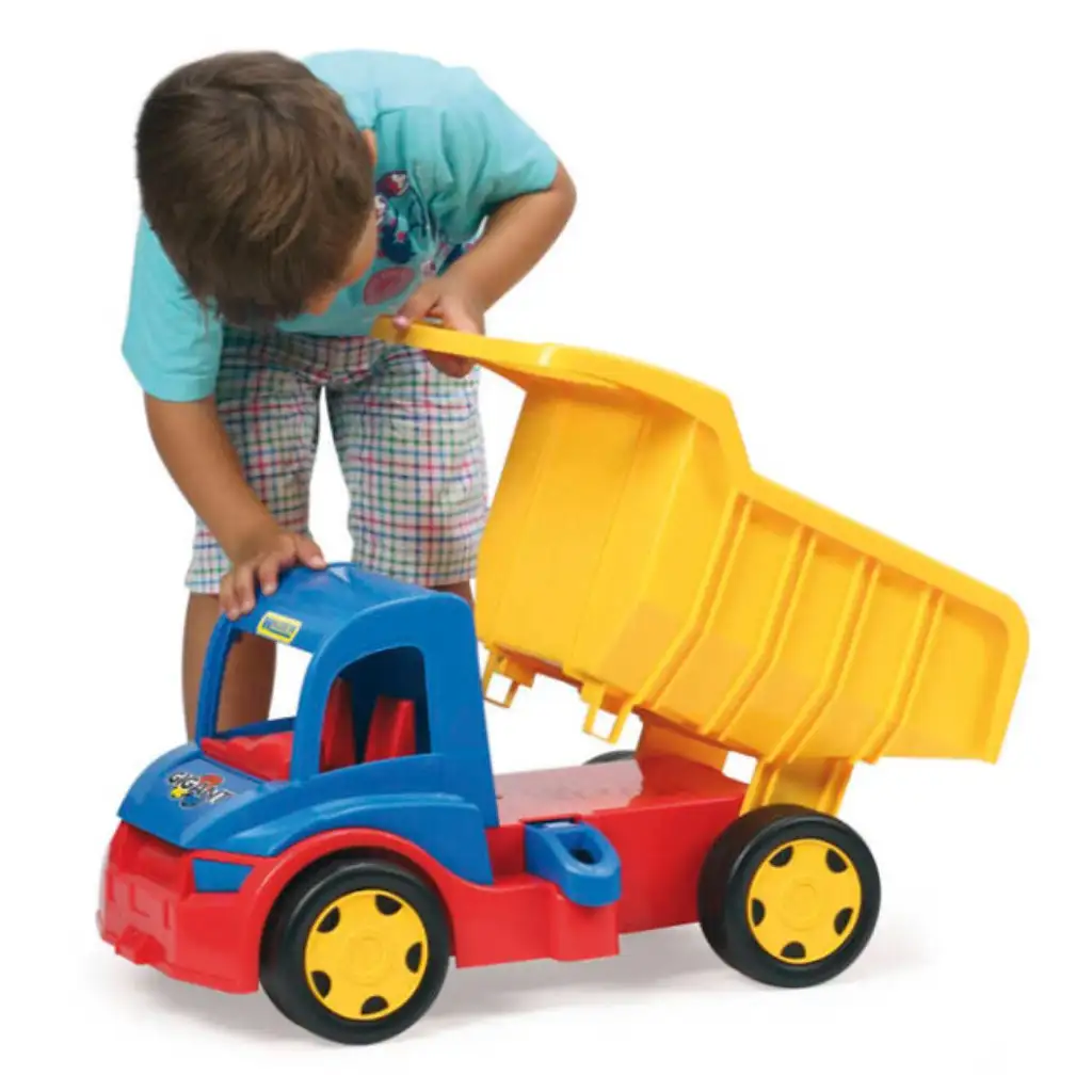 Z Wader Gigant velikanskim prekucnikom lahko vaš otrok doživi pravo gradbeno avanturo! Ta masiven, vzdržljiv in barvit prekucnik je popolna izbira za peskovnik, vrt ali celo za notranjo igro. Zaradi nosilnosti do 150 kg prenese tudi najtežje terene, medtem ko z nagibno ploščadjo omogoča enostaven prevoz tovora. Velikost 55 cm je idealna za majhne roke in zagotovo razvija otrokove motorične sposobnosti, domišljijo in ustvarjalnost.
