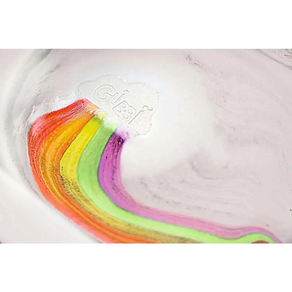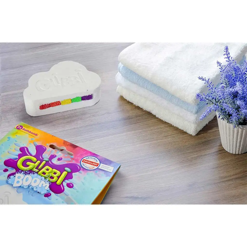 Izkušnja ni samo vizualno privlačna, ampak je tudi polna čutnih doživetij, saj se otroci ob dotiku barvite vode igrivo seznanjajo z različnimi občutki. Uporaba kopel bombe je preprosta in varna, tako da jo lahko otroci uporabljajo samostojno pod nadzorom staršev. Dodajte Glibbi Boom v kad in opazujte, kako mavrica oživi pod vodo!
