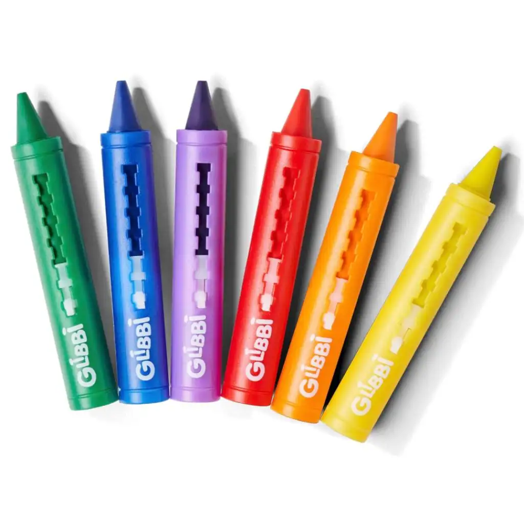 Glibbi komplet voščenih barvic za vodo ponuja fantastično izkušnjo za otroke med kopanjem! 6 živobarvnih voščenih barvic je posebej zasnovanih za kreativno okrasitev površin kadi ali ploščic, medtem ko se otroci veselo igrajo v vodi. Ustvarjena dela se zlahka sperejo z vodo, zato ni več skrbi zaradi trdovratnih madežev. Ergonomična oblika voščenih barvic zagotavlja udoben oprijem za majhne roke, tako da lahko tudi najmlajši uživajo v risanju.