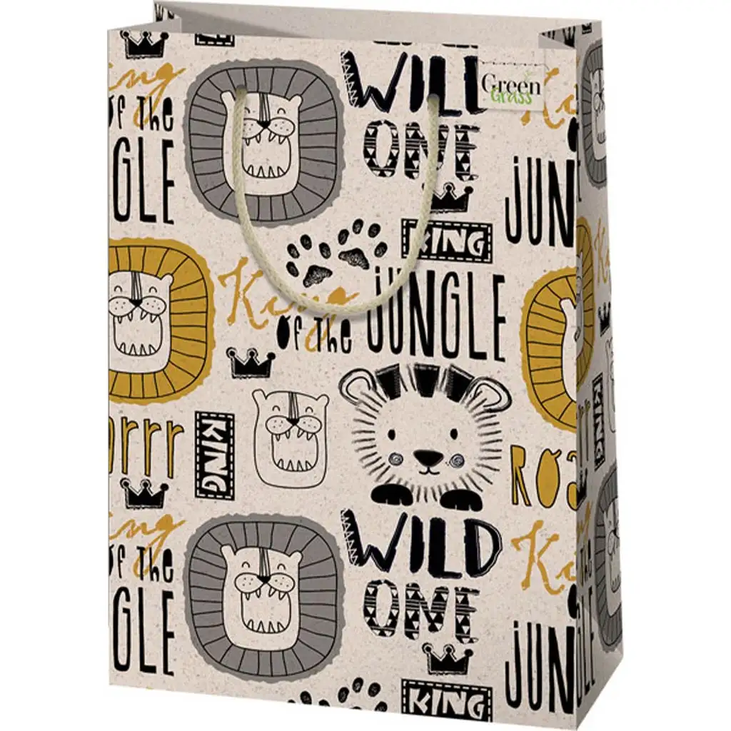 Green Grass Lev vzorec velika premium darilna vrečka 26x14x33cmGreen Grass Lev vzorec velika premium darilna vrečka 26x14x33cm