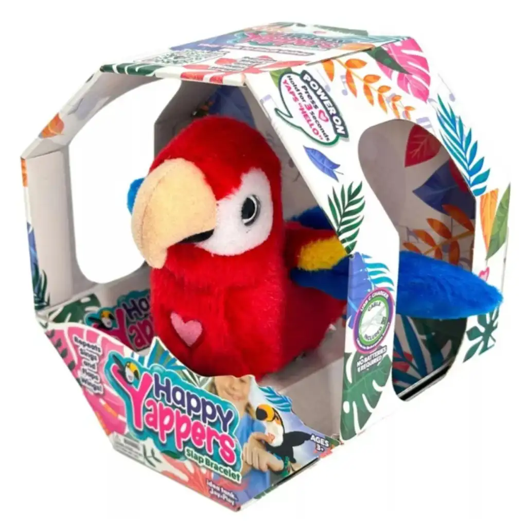 Interaktivna plišasta igrača Happy Yappers rdeči papagaj je zabavna in posebna igrača, ki prebudi otroško domišljijo! Preprosto si jo pripni na zapestje s pisano slap zapestnico in papagaj bo vedno s teboj. S pritiskom na srce na prsih začne ponavljati, peti, mahati s perutmi in celo "pogovarjati" se z drugimi figuricami Happy Yappers! Igrača zabava z veselimi zvoki in gibi, zato se otroci zlahka potopijo v svet igre. Idealen je kot darilo, saj je hkrati plišasta figura in interaktivni prijatelj, ki popestri vsako pustolovščino. Dovoli, da Happy Yappers rdeči papagaj prileti v tvoj dom in naj se zabavna skupna igra začne!